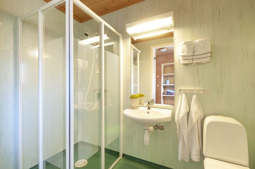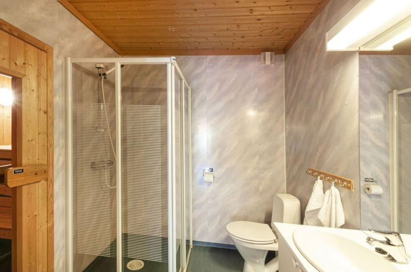 Badværelse 1: 1 bruser, 1 WC. Badværelse 2: 1 bruser, 1 WC. Sauna.