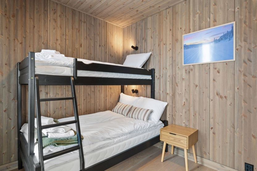 Soveværelse 1: 1 dobbeltseng (160cm x 200cm) Soveværelse 2 + 3: 1 familiekøjeseng (120 cm / 90 cm x 200cm)
