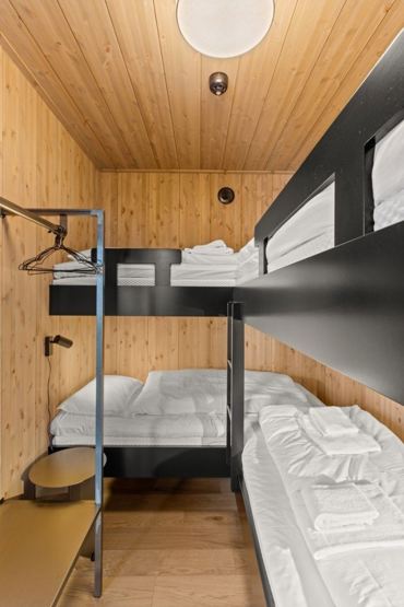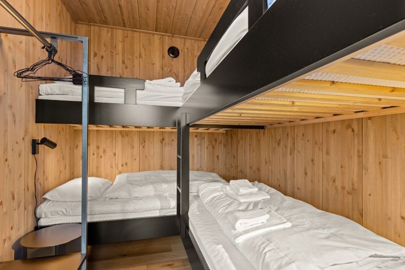 Soveværelse 1: 1 dobbeltseng (160cm x 200cm) Soveværelse 2+3: 1 familiekøjesenge (120/90cm x 200cm)
