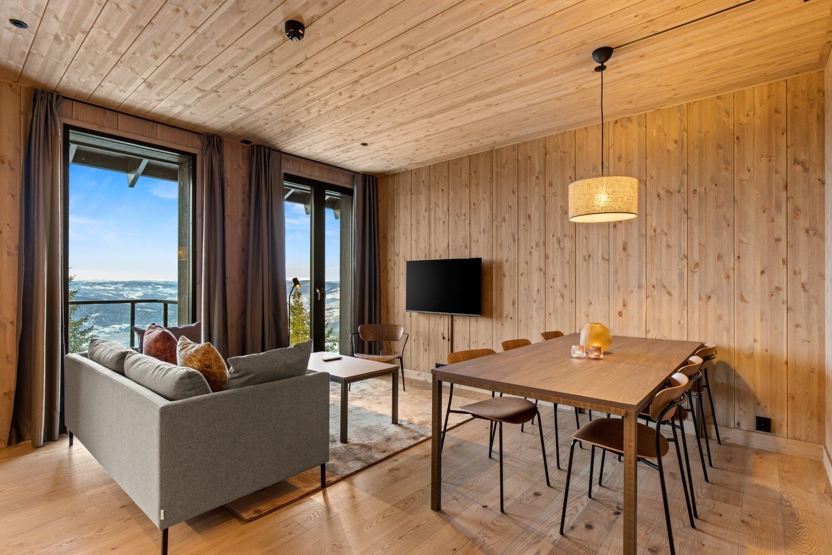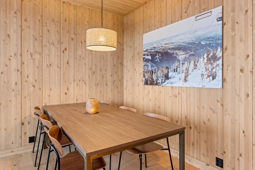 Favn Backyard 65D - 6+2 personer. Lejlighed på 76 kvm. 3 soveværelser. Åben planløsning med køkkenafdeling med spiseplads til 8 personer. Opholdsstue med TV og sofagruppe. 1 bruser, 2 WC, Balkon. Carport til en bil. Adgang til skibod. Lejligheden er privatejet og kan variere i Interiør. Alle billeder er illustrationsfoto, ændringer af interiør kan forekomme, lejligheder er under opførelse.
