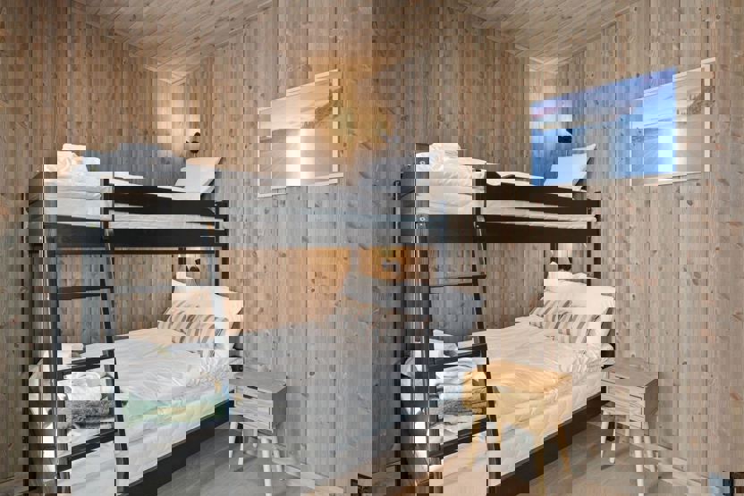 Soveværelse 1:  1 dobbeltseng (160cm x 200cm) Soveværelse 2+3: 1 familiekøjeseng (120cm/75cm x 200 cm)