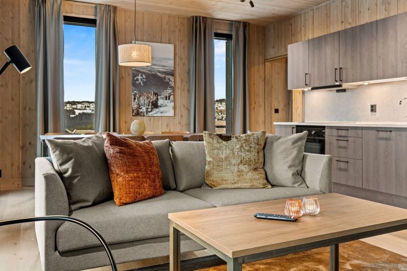 Favn Vista 65i tilbyr alt du trenger for et avslappende opphold. På kjøkkenet finner du komfyr, kjøleskap, fryser, oppvaskmaskin og kaffetrakter. Spiseplass til 8 personer, perfekt for hyggelige måltider sammen. Etter en dag med aktiviteter kan du slappe av i stuen som er utstyrt med sofa og TV.