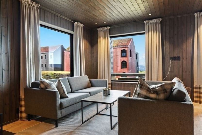 Ekstra info: Opholdsstue med pejs, sofa, TV. Spisebord til 8 pers. Inklusiv opredte senge i vinterperioden. Indendørs parkering til 1 bil, elbiloplader mod betaling på Favn Klyngetun. Balkon.