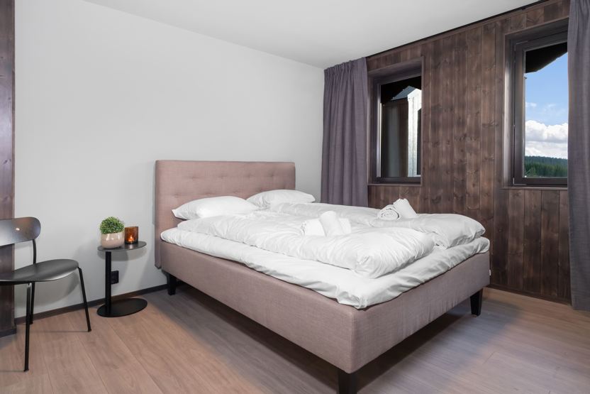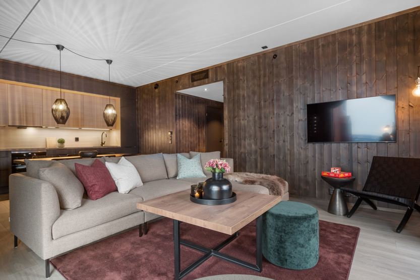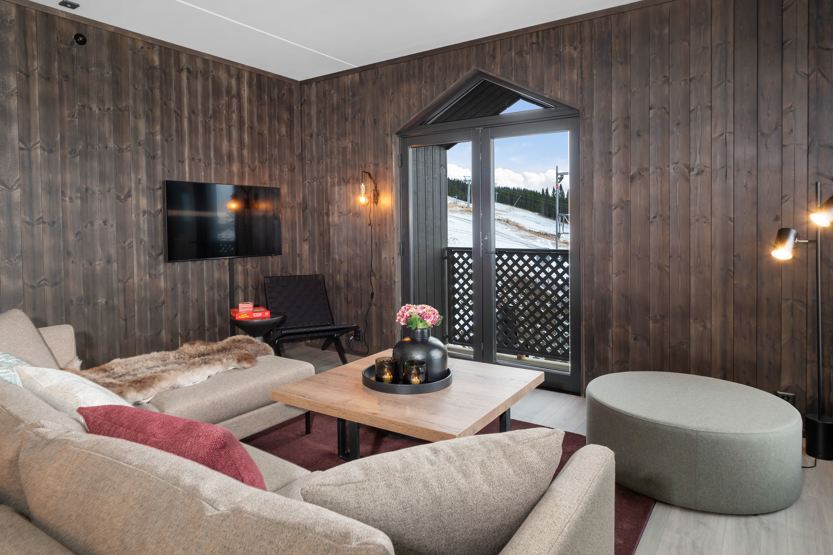 Favn Comfort A403 - 7 personer. Lejlighed på 70 kvm. 3 soveværelser. Åben planløsning med køkkenafdeling med spisebord til 8 personer. Opholdsstue med TV. 1 bruser, 1 WC. Skiskab. Udendørs parkering og elbilopladere mod betaling. Interiør kan variere.
