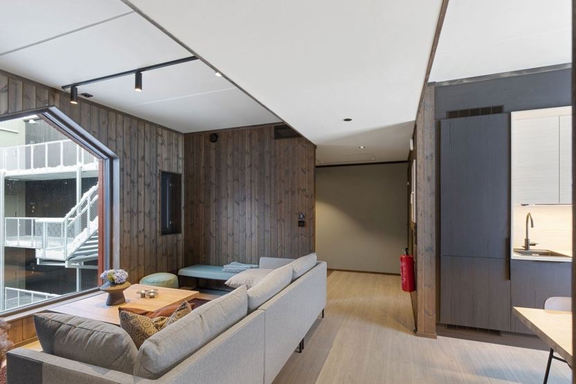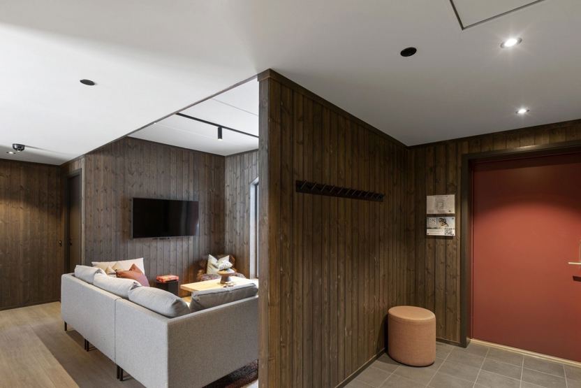Favn Comfort B404 - 5 personer. Lejlighed på 62 kvm. 2 soveværelser. Åben planløsning med køkkenafdeling med spisebord til 6 personer. Opholdsstue med TV. 1 bruser, 1 WC. Skiskab. Udendørs parkering og elbilopladere mod betaling. Interiør kan variere.