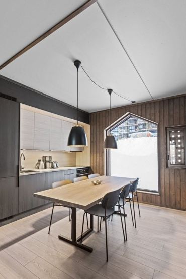 Enheden har komfur, ovn, køleskab med fryser, opvaskemaskine, kaffemaskine.