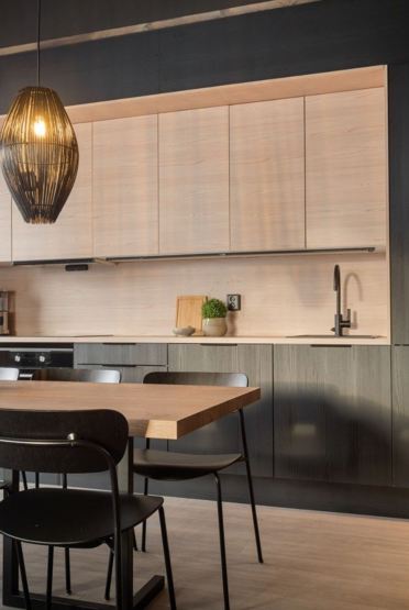 Enheden har komfur, ovn, køleskab med fryser, opvaskemaskine, kaffemaskine.