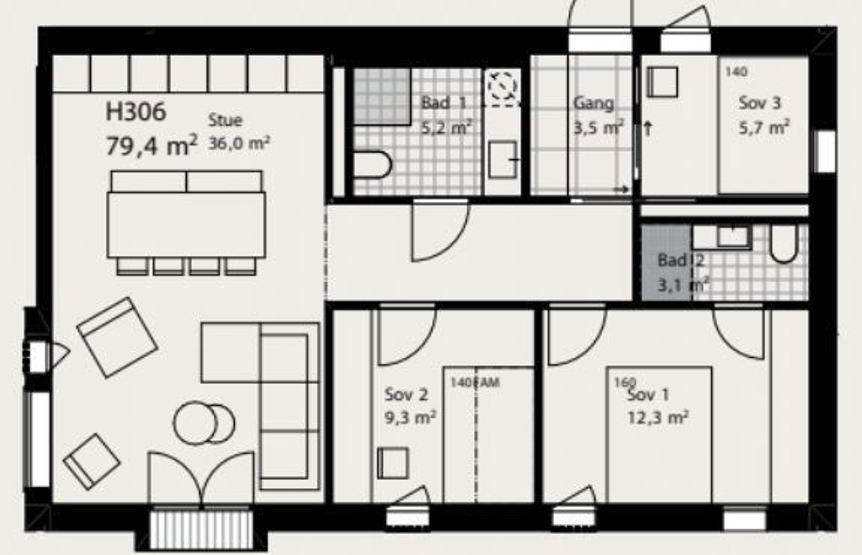 Bad 1: 1 Bruser, 1 WC Bad 2: 1 Bruser, 1 WC