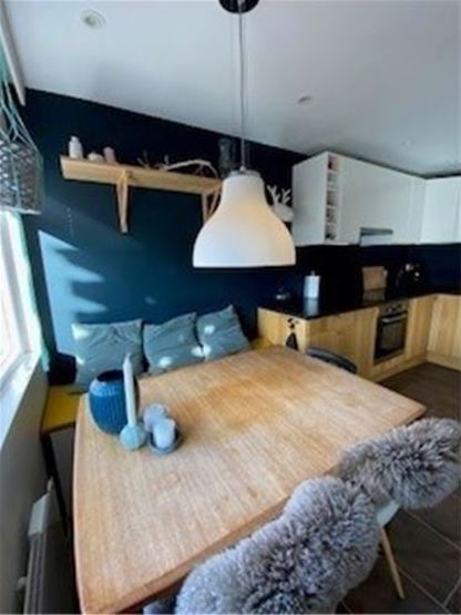 Lejlighed 142 - 5 personer. Lejlighed på 55 kvm. 2 soveværelser. Åben planløsning med køkkenafdeling med spisebord til 5 personer. Opholdsstue med brændeovn, TV. 1 bruser, 1 WC. Skiskab. Vaskemaskine. Grill tilgængelig. Parkering til 1 bil. Balkon. Lejlighederne er privatejet og kan variere i interiør.