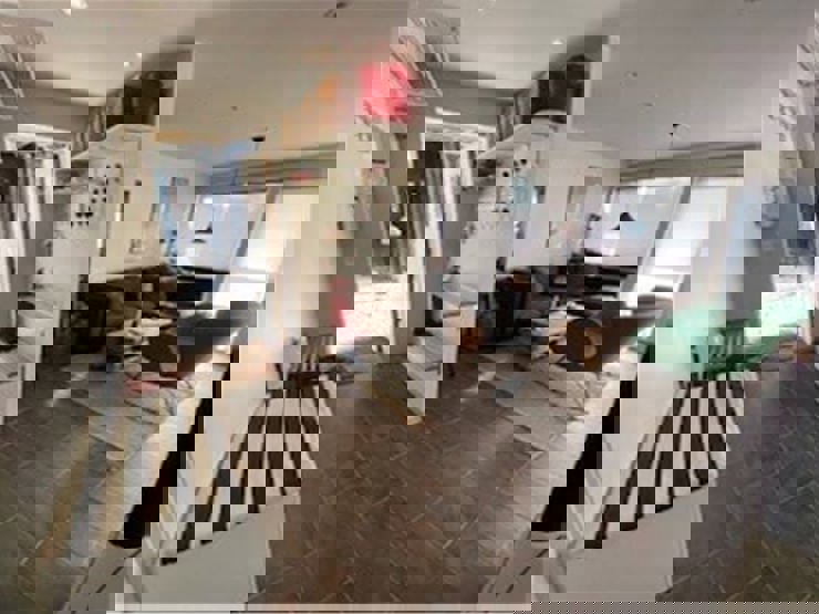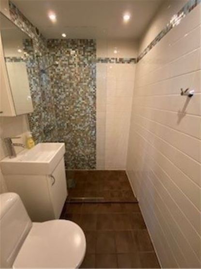 Enheden har komfur, ovn, køleskab med fryser, opvaskemaskine og kaffemaskine.