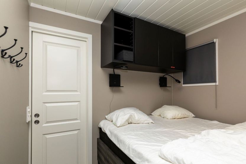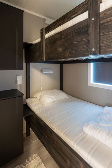 Soverum 1: 1 dobbeltseng (150cm x 200cm) Soverum 2: 1 køjeseng (90cm x 200cm)