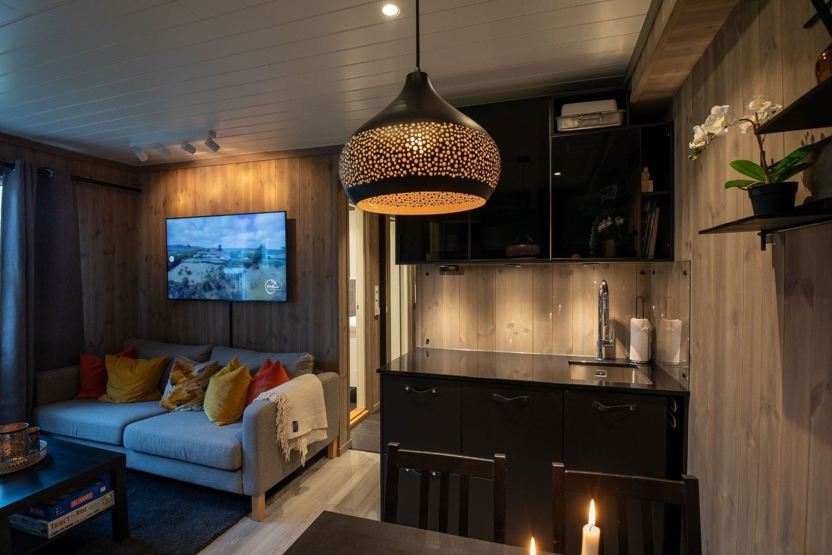 Enheden har komfur, ovn, køleskab, fryser, opvaskemaskine, mikrobølgeovn, kaffemaskine.