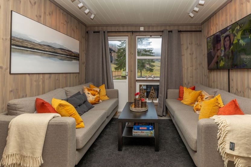 Ekstra info: Opholdsstue med sofa og TV. Skiskab. Udendørs parkering. Terrasse.