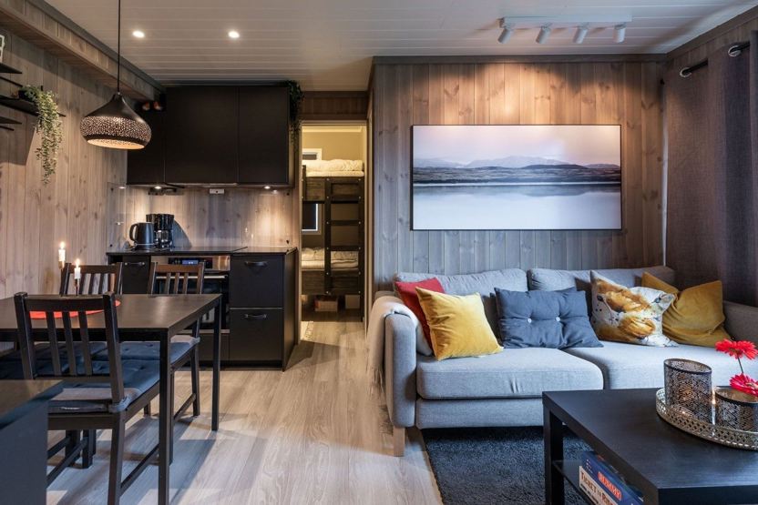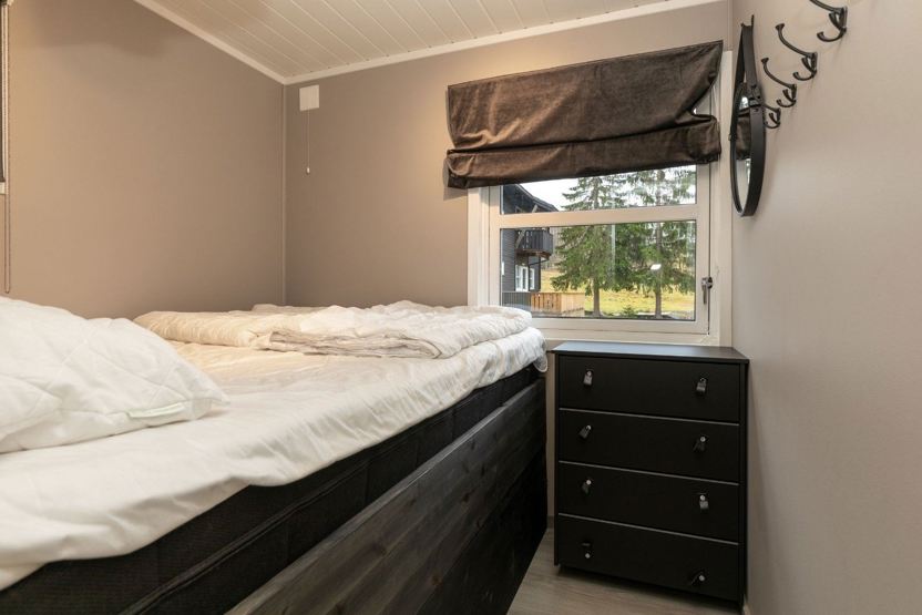 Hafjell Alpinlandsby 22 - 4 personer. Lejlighed på 35 kvm. 2 soveværelser. Åben planløsning med køkkenafdeling med spisebord til 4 personer. Opholdsstue med sofa og TV. 1 bruser, 1 WC. Terrasse. Skiskab. Lejligheden er privatejet, interiør kan variere.