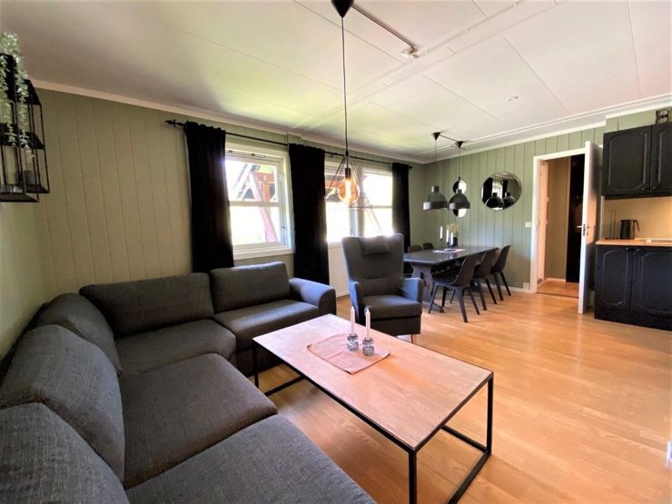 Hafjell Alpinlandsby 56 - 9 personer. Lejlighed på 80 kvm. 3 soveværelser. Åben planløsning med køkkenafdeling med spisebord til 8 personer. Opholdsstue med TV. 2 brusere, 2 WC. Balkon. Skiskab. Tørreskab. Lejligheden er privatejet, interiør kan variere.