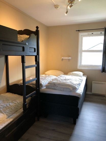 Soverum 1: 1 dobbeltseng (150cm x 200cm) Soverum 2: 1 dobbeltseng (150cm x 200cm) + 1 køjeseng (90cm x 200cm)