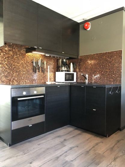 Enheden har komfur, ovn, køleskab, fryser, opvaskemaskine, mikrobølgeovn, kaffemaskine.