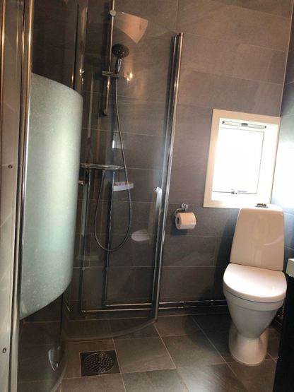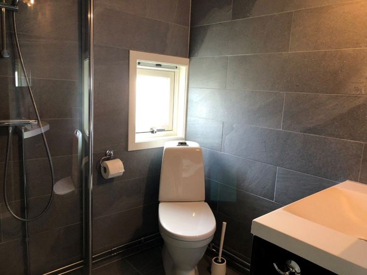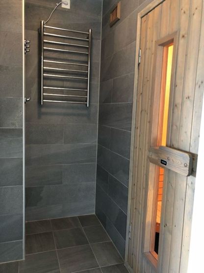 Bad 1: 1 bruser, 1 WC, sauna. Bad 2: 1 bruser, 1 WC.