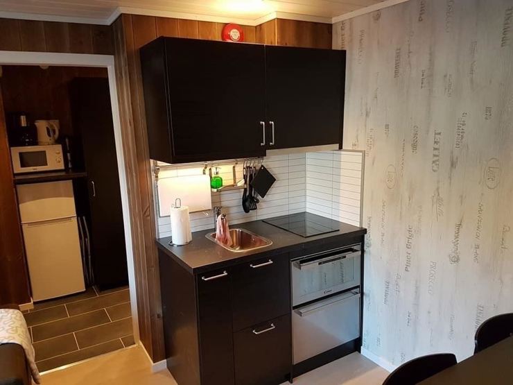 Enheden har komfur, ovn, køleskab, fryser, opvaskemaskine, mikrobølgeovn, kaffemaskine.