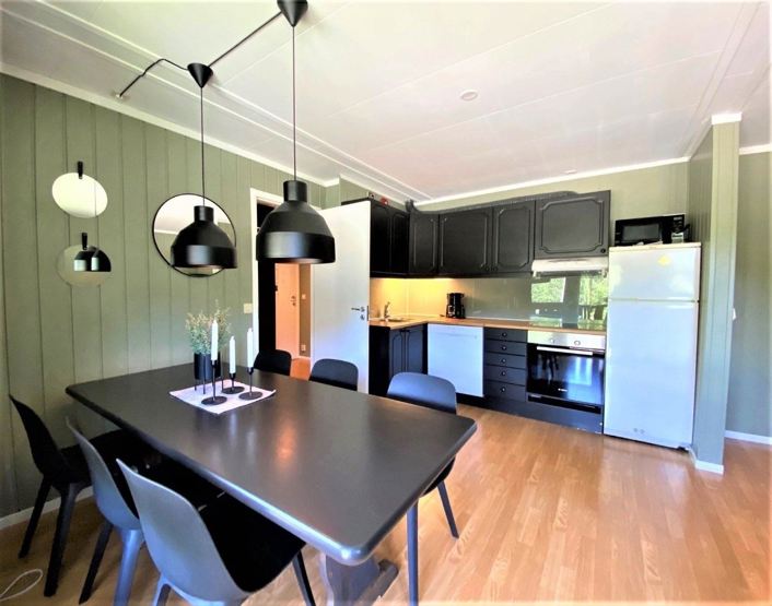 Alpinlandsbyen 56 tilbyr alt du trenger for et avslappende opphold. På kjøkkenet finner du komfyr, kjøleskap, fryser, mikrobølgeovn, oppvaskmaskin og kaffetrakter. Spiseplass til 8 personer, perfekt for hyggelige måltider sammen. Etter en dag med aktiviteter kan du slappe av i stuen som er utstyrt med sofa og TV.