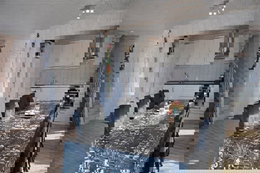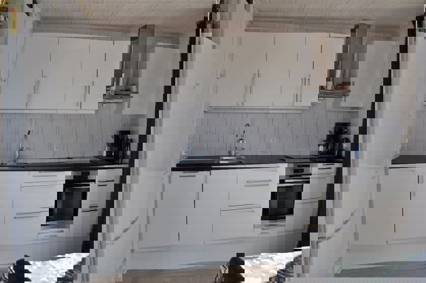 Enheden har komfur med ovn, opvaskemaskine, køleskab, fryser, mikroovn, kaffemaskine.