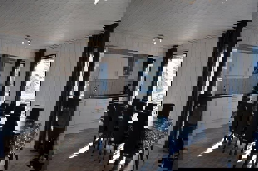 Ekstra info: Opholdsstue med TV, brændeovn. TV. Vaskemaskine og tørretumbler. 1 barneseng, 1 barnestol. Terrasse Ved glatføre skal snekæder benyttes, for at undgå stop og kødannelse. Udendørs parkering.
