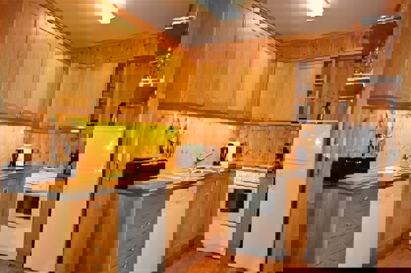 Enheden har komfur med ovn, køleskab, fryser, mikrobølgeovn, opvaskemaskine, kaffemaskine.