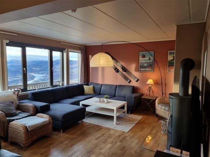 Kjusgrenda 85A - 8 personer. Lejlighed på 73 kvm, 3 soveværelser. Åben planløsning med fuldt udstyret køkken med spiseplads til 8 personer. Opholdsstue med sofagruppe, TV og brændeovn. 1 bruser, 2 WC. Vaskemaskine og tørretumbler. Skiskab. Terrasse.