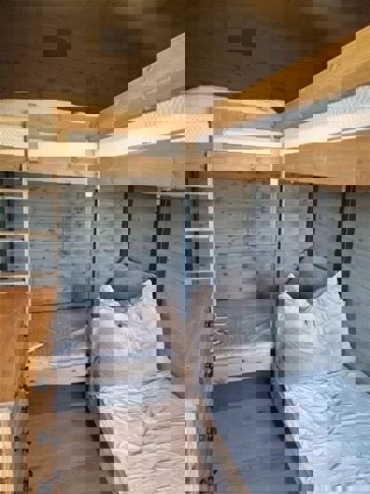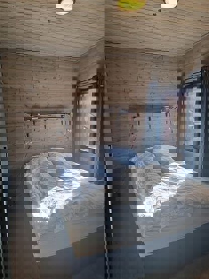 Soveværelse 1: 1 dobbeltseng (160cm x 200cm) Soveværelse 2: 2 køjesenge (90cm x 200cm)