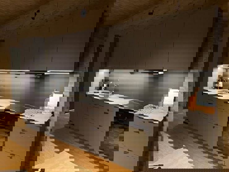 Enheden har komfur, ovn, køleskab, fryser, opvaskemaskine, kaffemaskine.
