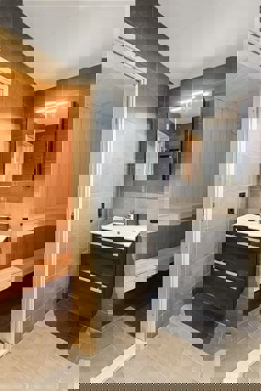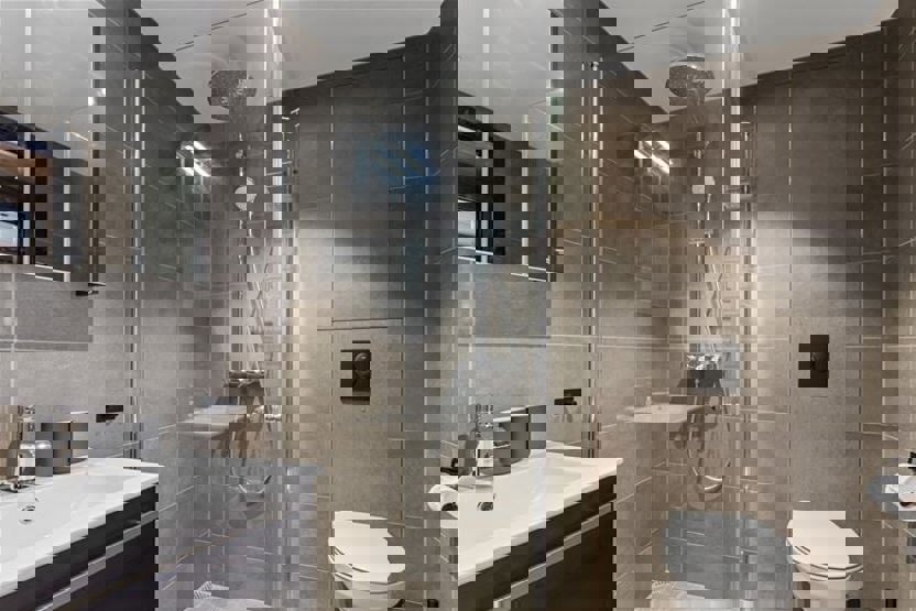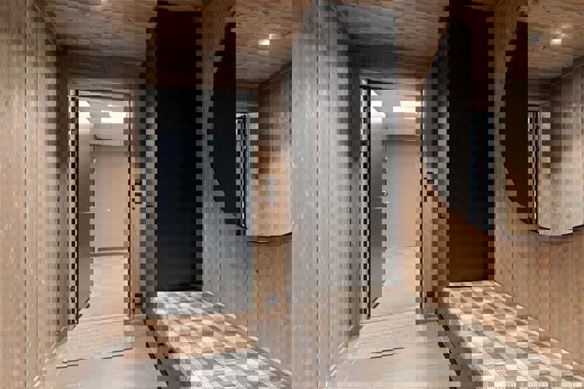 Bad 1: 1 bruser, 1 WC, sauna Bad 2: 1 bruser, 1 WC.