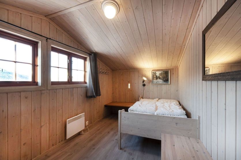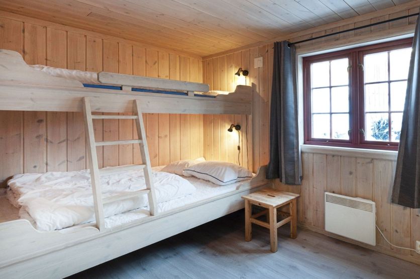Hytte med 9+1 sengepladser, fordelt på 100 kvm på 2 etager. 4 soveværelser, 2 brusere, 2 WC, sauna.