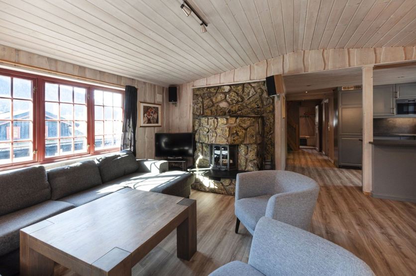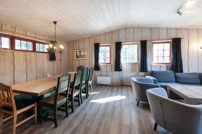 Ekstra info: Opholdsstue med TV, sofa, pejseovn. Spisebord til 12 pers. Skibod. Vaskemaskine og tørretumbler.