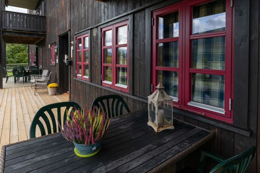 Nordlia F8. Lejlighedskompleks i traditionel stil i det populære Nordlia Hyttegrend.