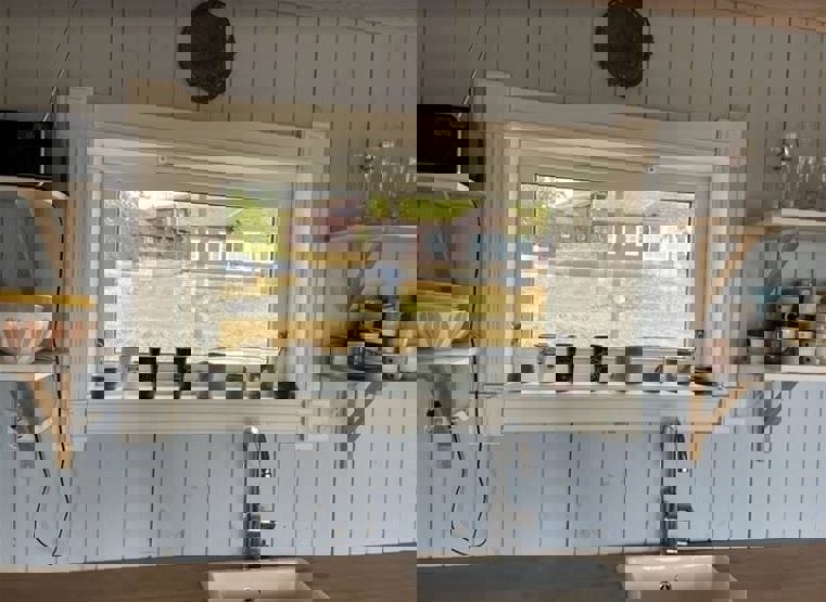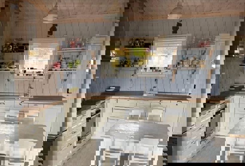 Enheden har komfur, ovn, køleskab, fryser, opvaskemaskine, kaffemaskine.