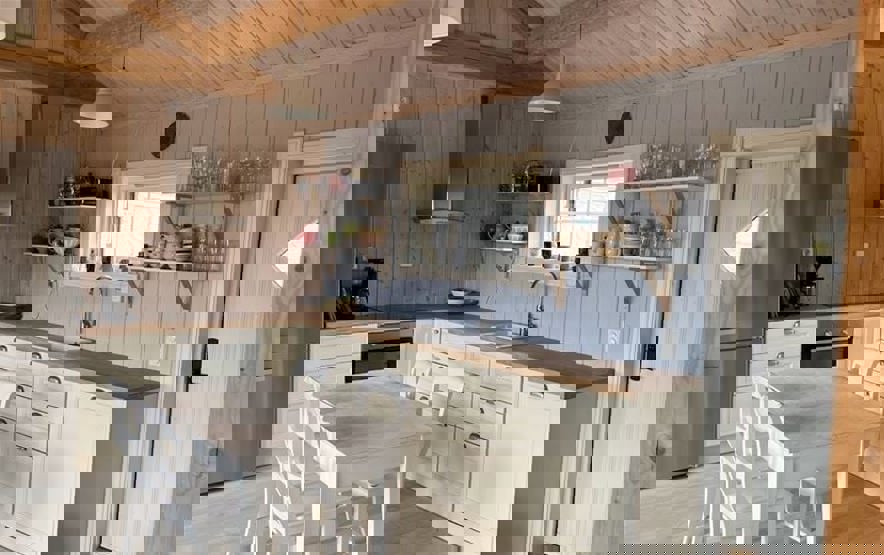 Skåklevegen 44 - 9 sengepladser. Hytte på 150 kvm. 4 soveværelser . Åben planløsning med fuldt udstyret køkkenafdeling med spiseplads op til 10 personer. Opholdstue med brændeovn, TV og sofagruppe. Mindre hems (lavloftet). Vaskemaskine og tørretumbler. 1 brusere, 2 WC. Terrasse. Udendørs parkering. Hytten er privatejet, interiør kan derfor variere.