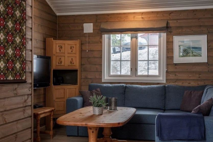 Sørlia 11A - 4+2 personer. Hytte på 59 kvm, 2 soveværelser. Åben planløsning med køkkenafdeling og opholdsstue, TV og spiseplads til 6 personer. 1 bruser, 2 WC. Skiskab. Terrasse.