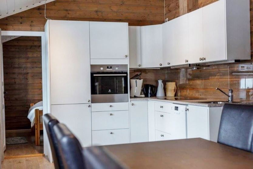Enheden har komfur, ovn, køleskab med fryser, opvaskemaskine, kaffemaskine.