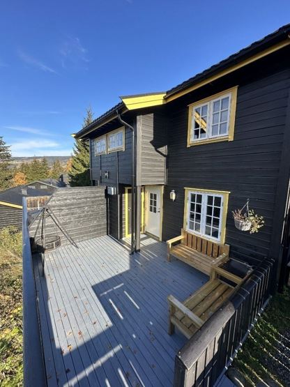Sørlia 13C - 8 personer. Dobbelthytte i 2 etager på 63 kvm, 3 soveværelser. Åben planløsning med køkkenafdeling og opholdsstue med brændeovn, TV og spiseplads til 8 personer. 1 bruser, 2 WC. Vaskemaskine og tørretumbler. Skiskab. Terrasse. Hytten er privatejet, interiør kan variere.