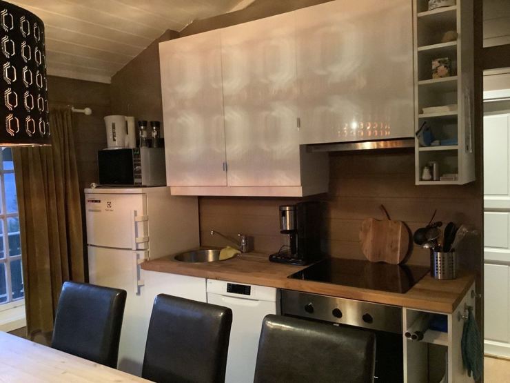 Enheden har komfur med ovn, køleskab med fryser, mikrobølgeovn, opvaskemaskine, kaffemaskine.