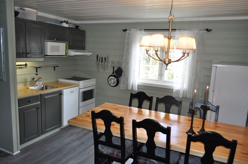 Enheden har komfur med ovn, køleskab med fryser, mikrobølgeovn, opvaskemaskine, kaffemaskine.