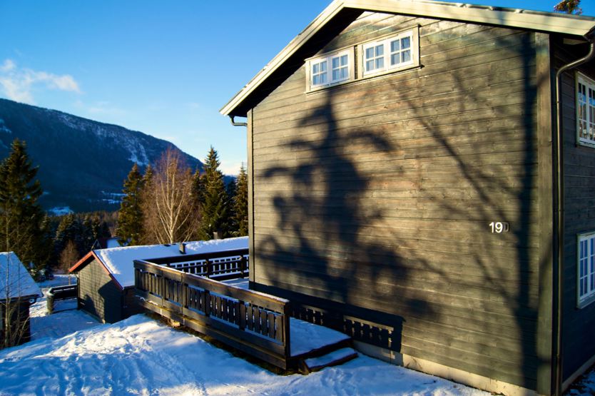 Sørlia 19D - 8+1 personer. Hytte på 63 kvm, 3 soveværelser. Åben planløsning med køkkenafdeling og opholdsstue med TV og spiseplads til 9 personer. 2 brusere, 2 WC. Skiskab. Terrasse.