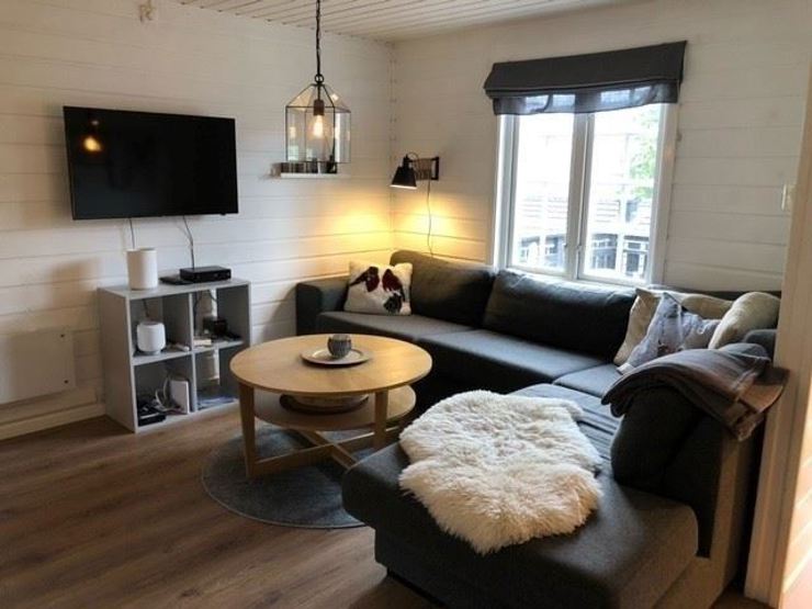 Sørlia 20C - 8+1 personer. Dobbelthytte i 2 etager på 62 kvm. 3 soveværelser. Åben planløsning med køkkenafdeling og opholdsstue, TV og spiseplads til 8 personer. 2 brusere, 2 WC. Skiskab. Terrasse.
