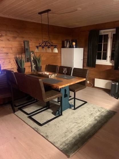 Sørlia 7B - 8 personer. Dobbelthytte i 2 etager på 63 kvm. 3 soveværelser. Åben planløsning med køkkenafdeling og opholdsstue, TV og spiseplads til 8 personer. 2 brusere, 2 WC. Skiskab. Terrasse.