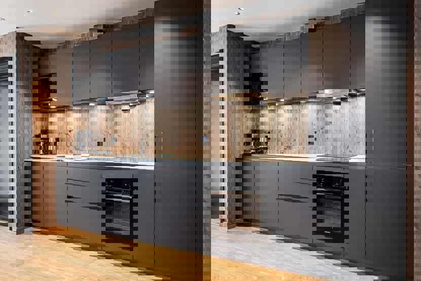 Indeholder bl.a. komfur, ovn, mikroovn, køleskab m/fryser, opvaskemaskine.