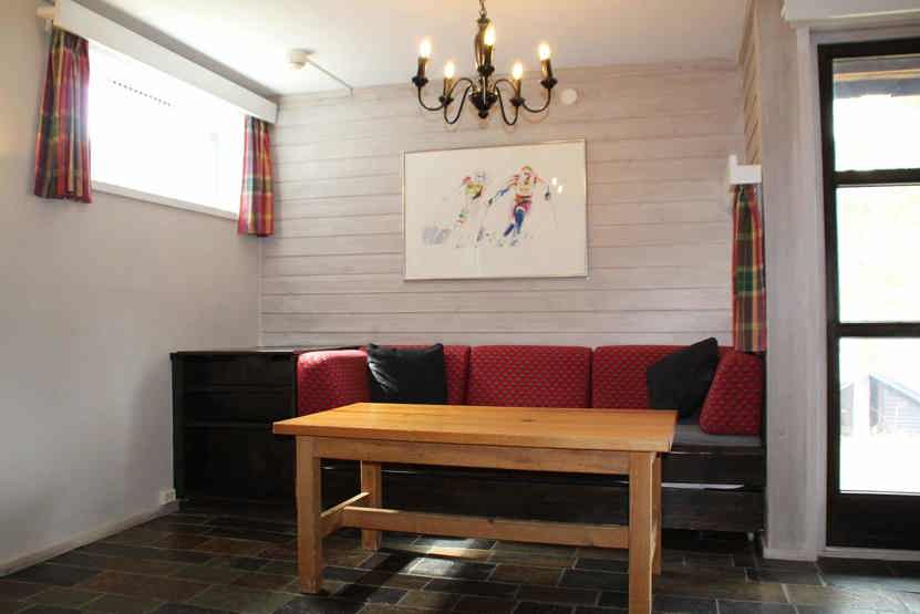 2+2 personers lejlighed, lys og praktisk lejlighed. Lejlighed i stueetage, 38 m². 1 soveværelse. Opholdsstue med TV, sovesofa og fuldt udstyret køkkenafdeling. 1 bruser, 1 WC. Skiopbevaring og tørrerum.