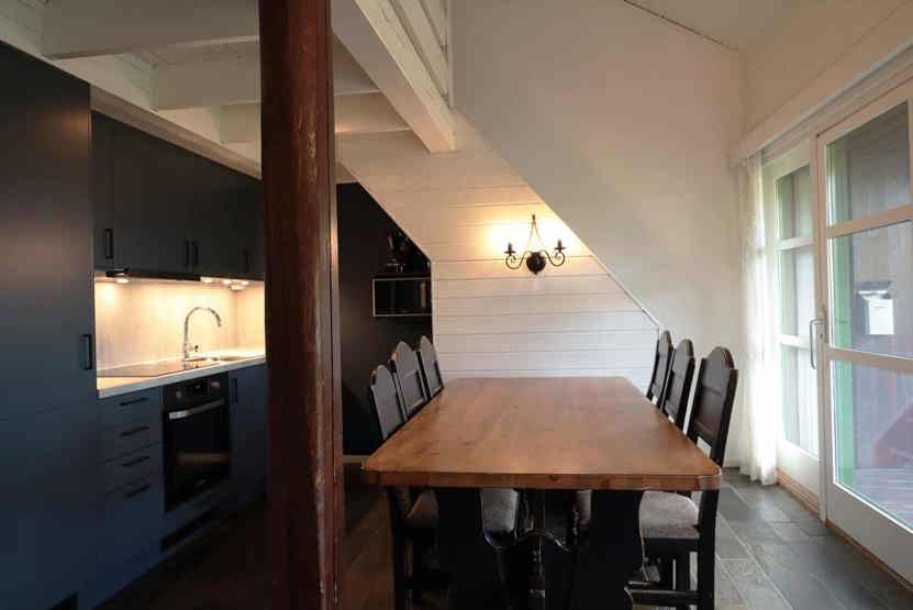 Køkkenet indeholder bl.a. kogeplade med 2 kogeplader, ovn, køleskab m/fryser, opvaskemaskine.