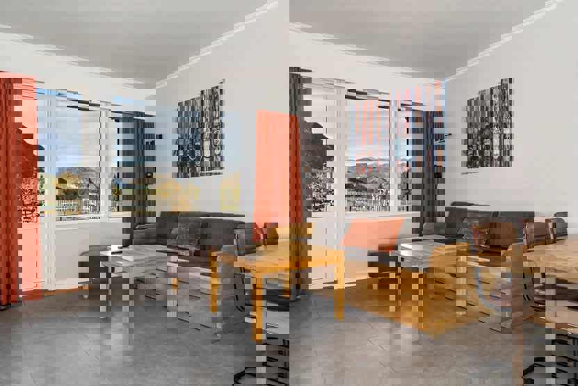2+2 personers lejlighed, bekvem, lys og praktisk lejlighed med åben planløsning og højt til loftet.