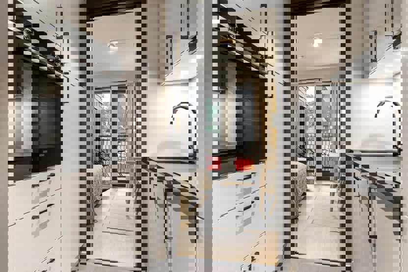 Indeholder bl.a. opvaskemaskine, komfur m/ovn, køleskab m/fryser.