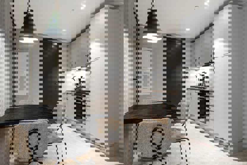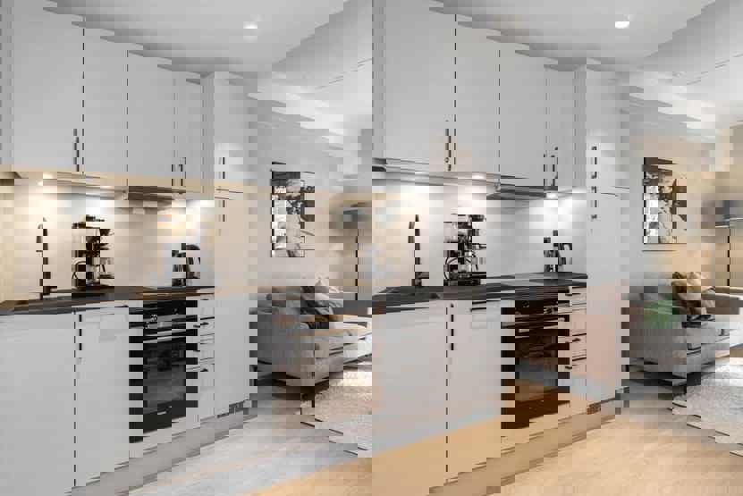 Indeholder bl.a. opvaskemaskine, komfur m/ovn, køleskab m/fryser.